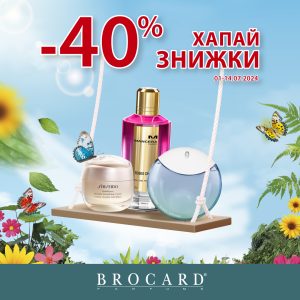 Купуй товари улюблених брендів з 01 до 14 липня 2024 зі знижками 40% в магазинах мережі BROCARD. Вирушай на шопінг і обирай улюблені парфуми та б’юті-засоби.