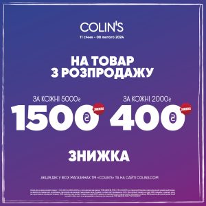 Акція діє на визначений товар з розпродажу з 11.01.2024 по 08.02.2024 включно в магазинах COLIN’S на сайті colins.com.