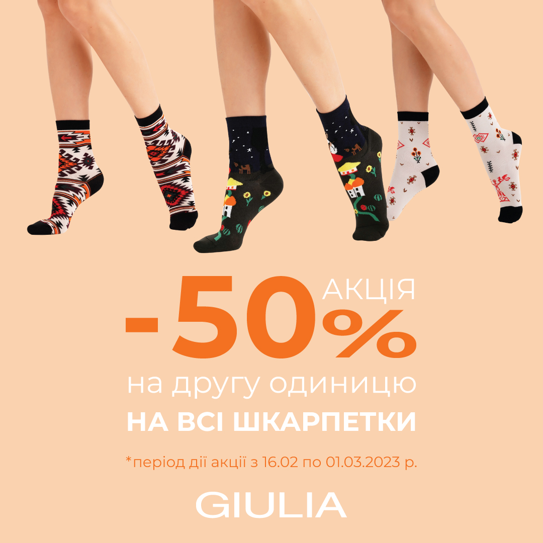 АКЦІЯ в GIULIA! 🔥ЗНИЖКА -50% на другу одиницю на всі шкарпетки!