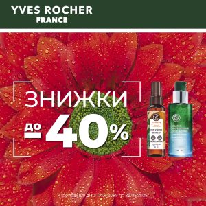 14.05.2025 Оголошуємо яскравий весняний розпродаж – ваші улюблені продукти зі знижками до -40%! Завітайте в бутик Yves Rocher до 28 травня та порадуйте себе чудовими покупками!