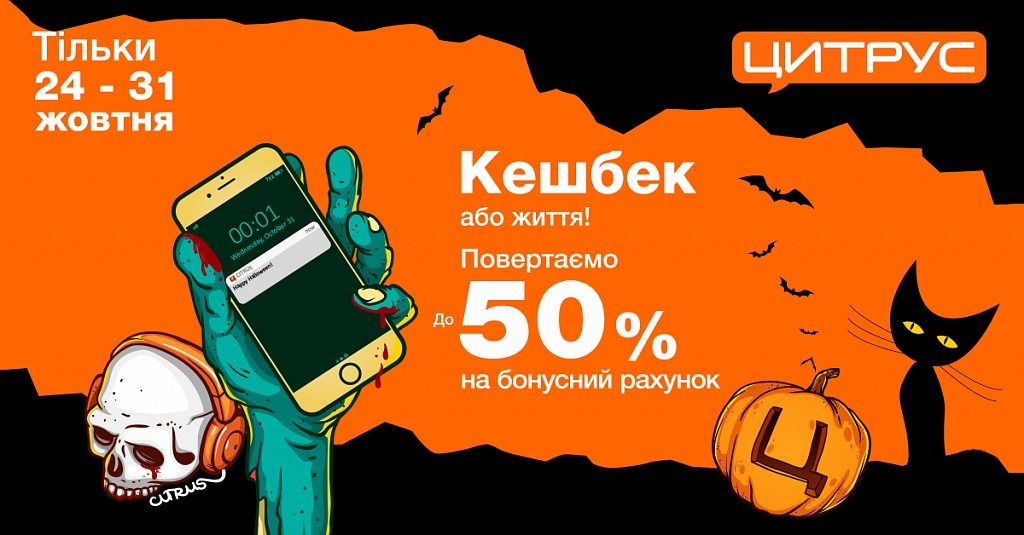До 31 жовтня 2018 року купуй акційні товари у магазині Цитрус та до 50% від їх вартості повернуться на твій бонусний рахунок*.