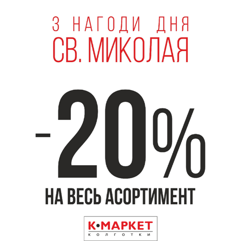 -20% на все у К-Маркет при покупці на 359 грн.