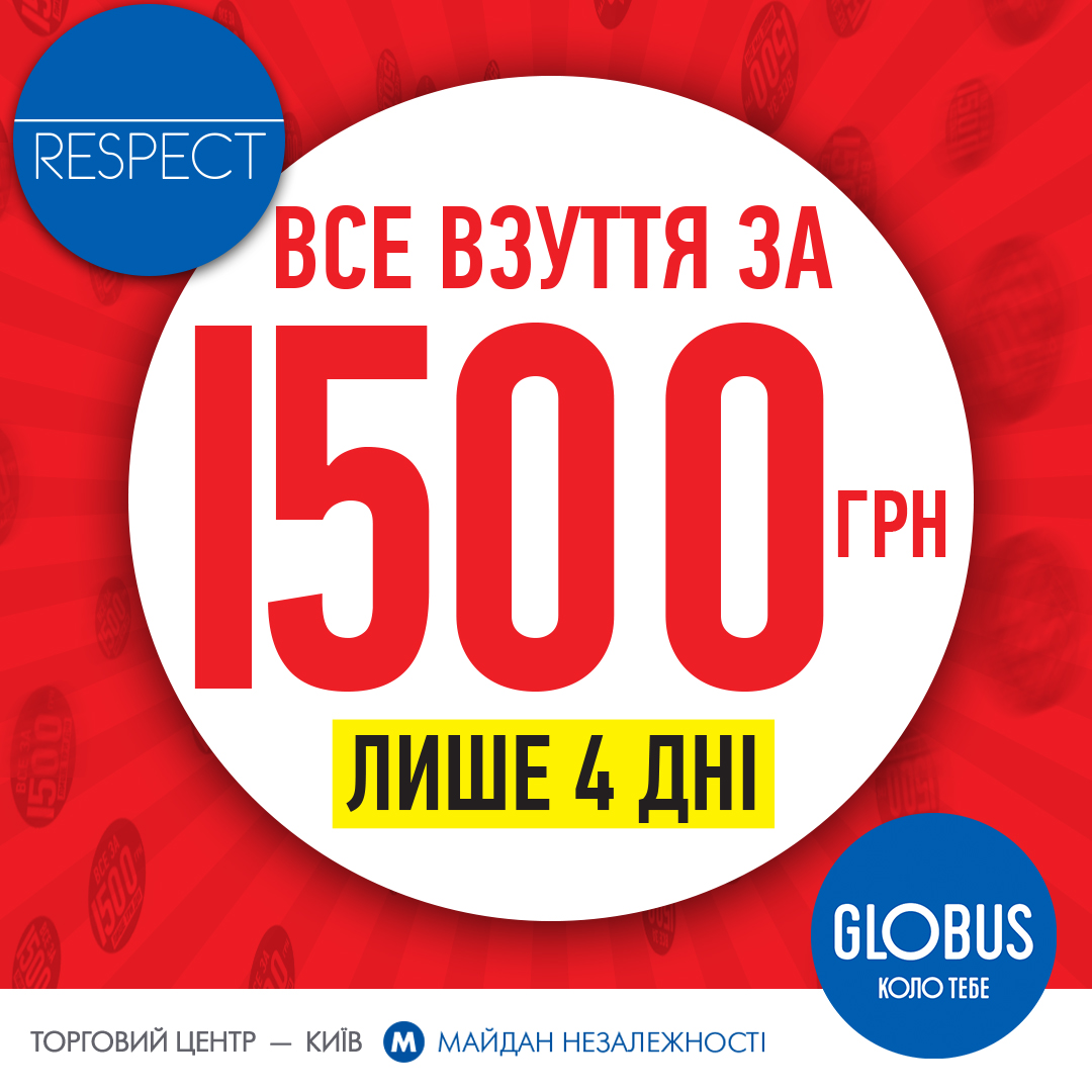 RESPECT: Святкові вихідні! Святкові знижки!1500 грн. на все