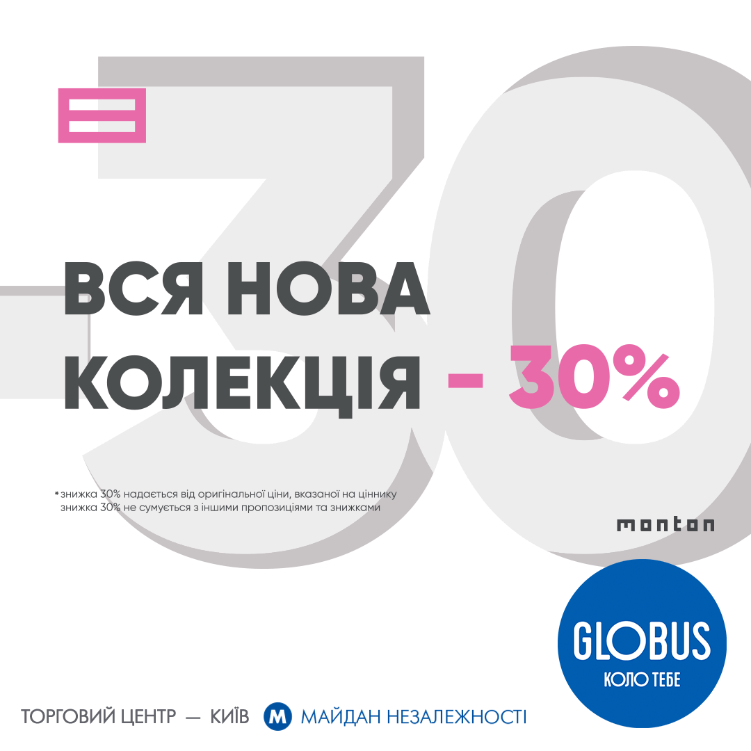 -30% НА ВСЮ НОВУ КОЛЕКЦІЮ в Monton у ТЦ GLOBUS!