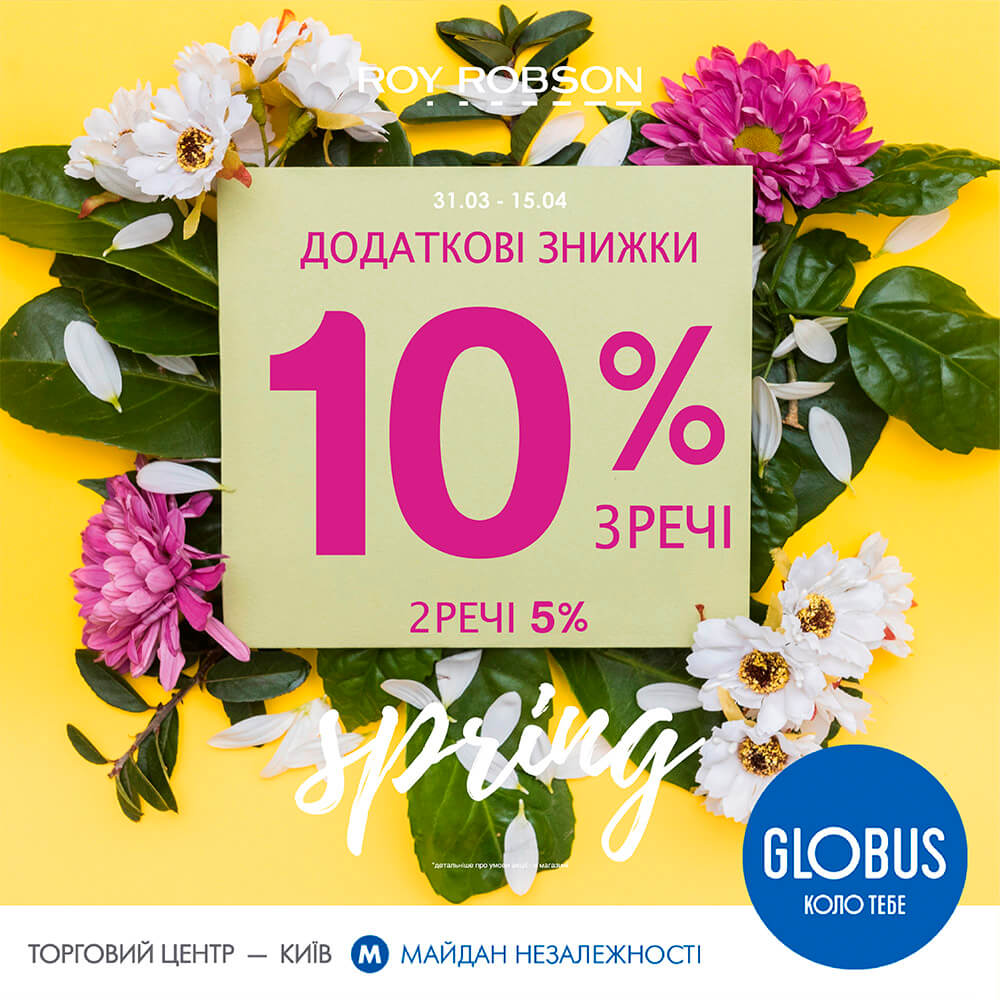 Знижки в магазині Roy Robson у ТЦ GLOBUS: -5% на 2 речі та -10% на три речі.