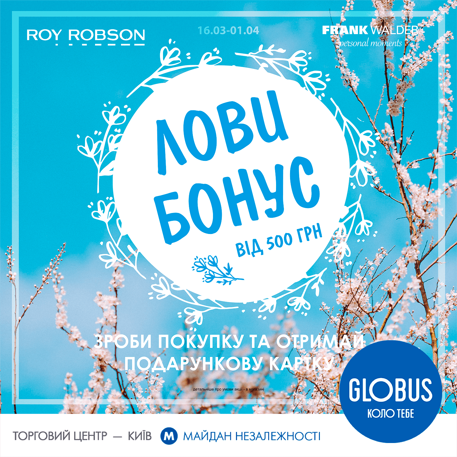 Отримайте максимум з покупок та чудовий бонус у магазинах Roy Robson та FrankWalder в ТЦ GLOBUS!