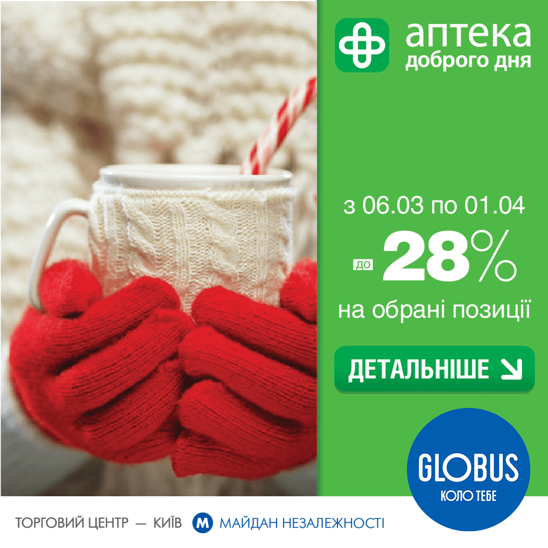 До -28% на обрані позиції в «Аптека Доброго Дня» в ТЦ GLOBUS!