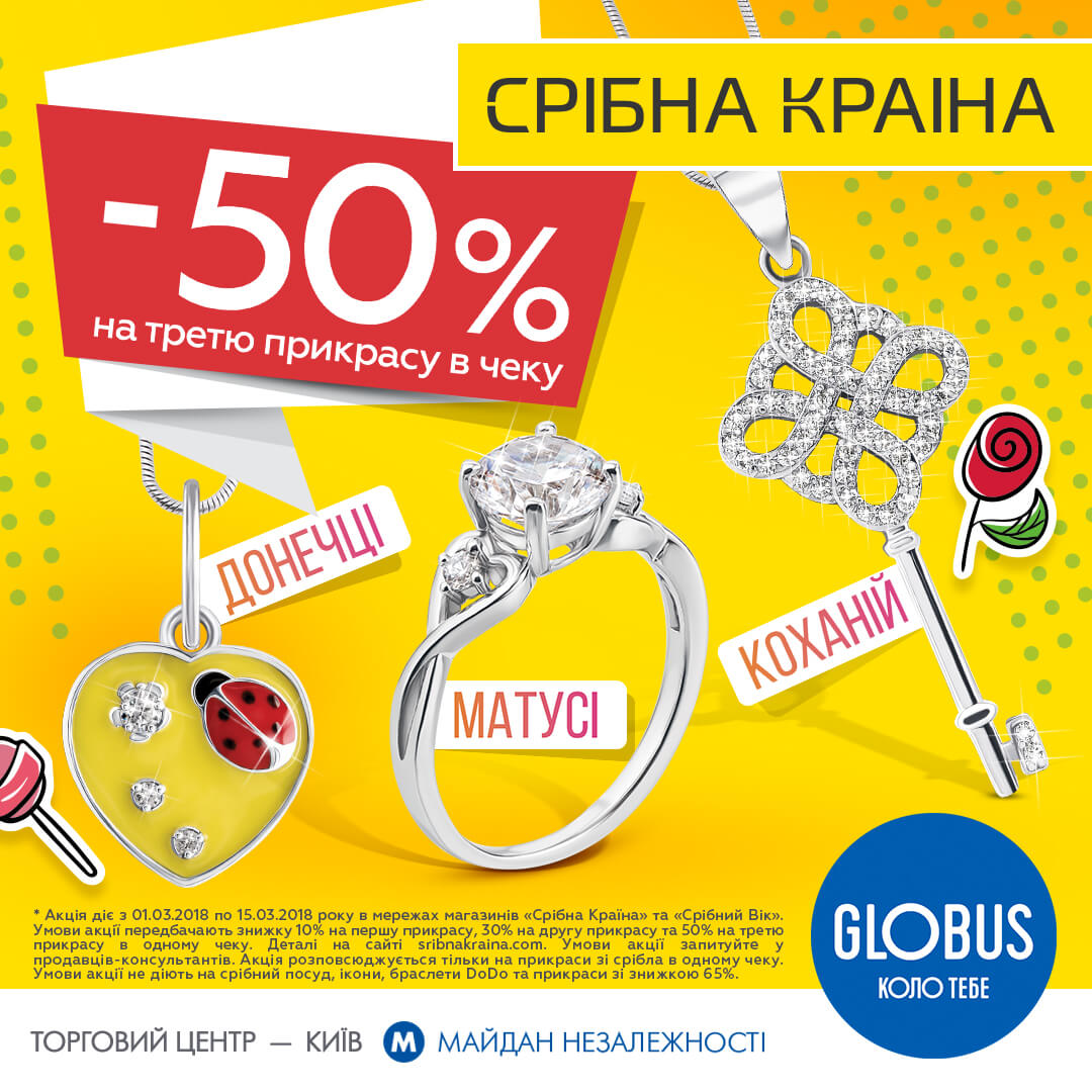Весняні знижки до -50% на третю прикрасу в чеку в «Срібна країна» в ТЦ GLOBUS!