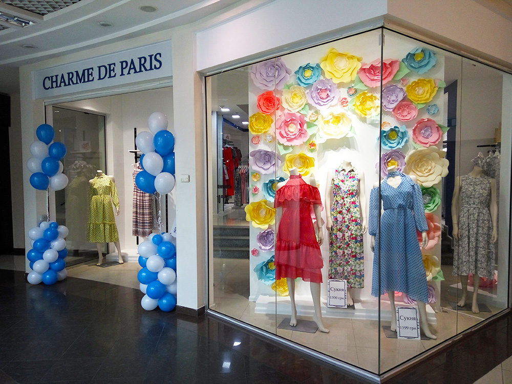 У червні в ТЦ Globus 2 на Майдані Незалежності відкрився новий магазин жіночого одягу — Charme De Paris. Це вже 6-й за рахунком магазин французького оператора в Києві. Асортимент магазину нараховує більше 500 одиниць жіночих повсякденних суконь різного фасону та крою. Сукні створюються з якісних тканин у Франції, Італії та Україні. Відмінною особливістю є розмірна сітка з дуже маленькими та дуже великими розмірами — від XXS до XXXL. Загальна площа магазину 88.5 кв.м. Екстер’єр магазину виконаний в світлих тонах з використанням великих яскравих декоративних квітів. Charme De Paris знаходиться на 2 поверсі ТЦ Globus 2 та працює щодня з 10:00 до 22:00.