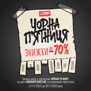 Чорна П’ятниця в Urban Planet стартує уже цього тижня. Купуй в додатку, на сайті або в магазині Urban Planet в “ТЦ Globus”