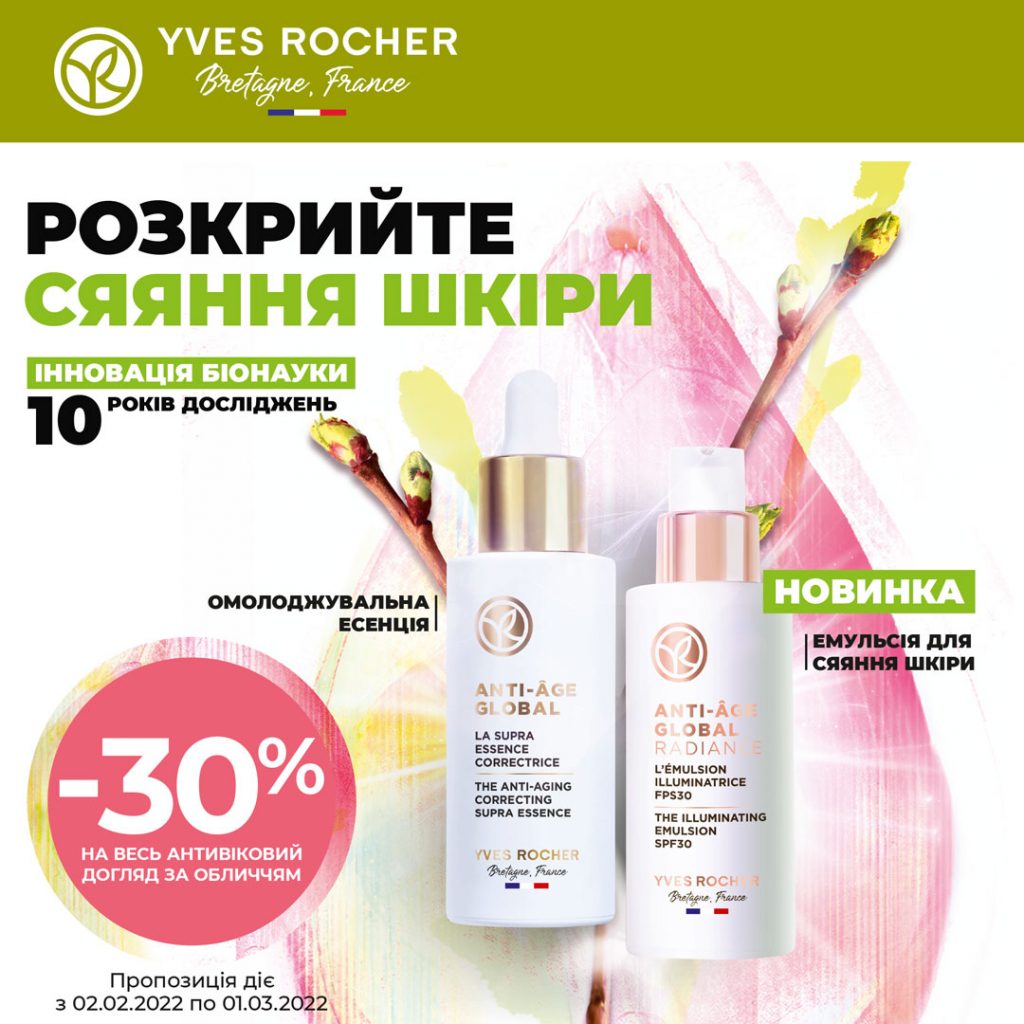 09.02.2022 У нас для вас одразу дві чудові новини від Yves Rocher! Перша: у бутиках діють знижки -30% на весь антивіковий догляд за обличчям! Друга: цього місяця вы можете отримати експертне молочко для тіла у подарунок до покупки від 549 грн!❤