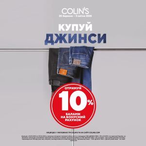 Для учасників програми лояльності ТОВ “ДЕЛЬТА ТЕКС” ТМ “COLIN’S”! Купуй джинси та отримуй 10% від суми чеку покупки у вигляді балів на особистий бонусний рахунок.