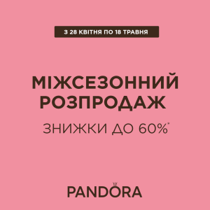 28.04.2025 Міжсезонний розпродаж в Pandora 😍 Знижки до 60% на вибрані товари* Поспішайте, адже пропозиція діє лише з 28 квітня по 18 травня. *Деталі акції дізнавайтесь у продавців-консультантів магазину Pandora у нашому ТЦ
