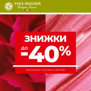 13.05.2024 Оголошуємо весняний розпродаж – ваші улюблені продукти зі знижками до -40%! Зробіть покупку від 499 грн у бутику Yves Rocher до 29/05 та отримайте до неї чудовий подарунок – Експрес Демакіяж з Волошкою для Контуру Очей 100 мл 😊