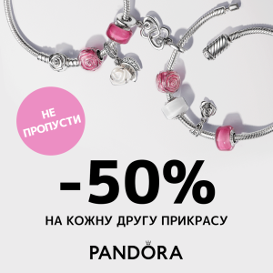 08.05.2024 Важлива новина від Pandora для шукачів подарунків! Лише з 8 по 12 травня кожна друга прикраса у чеку буде зі знижкою 50%*. Хутчіше вибирайте найкращі прикраси для себе та близьких 😉
