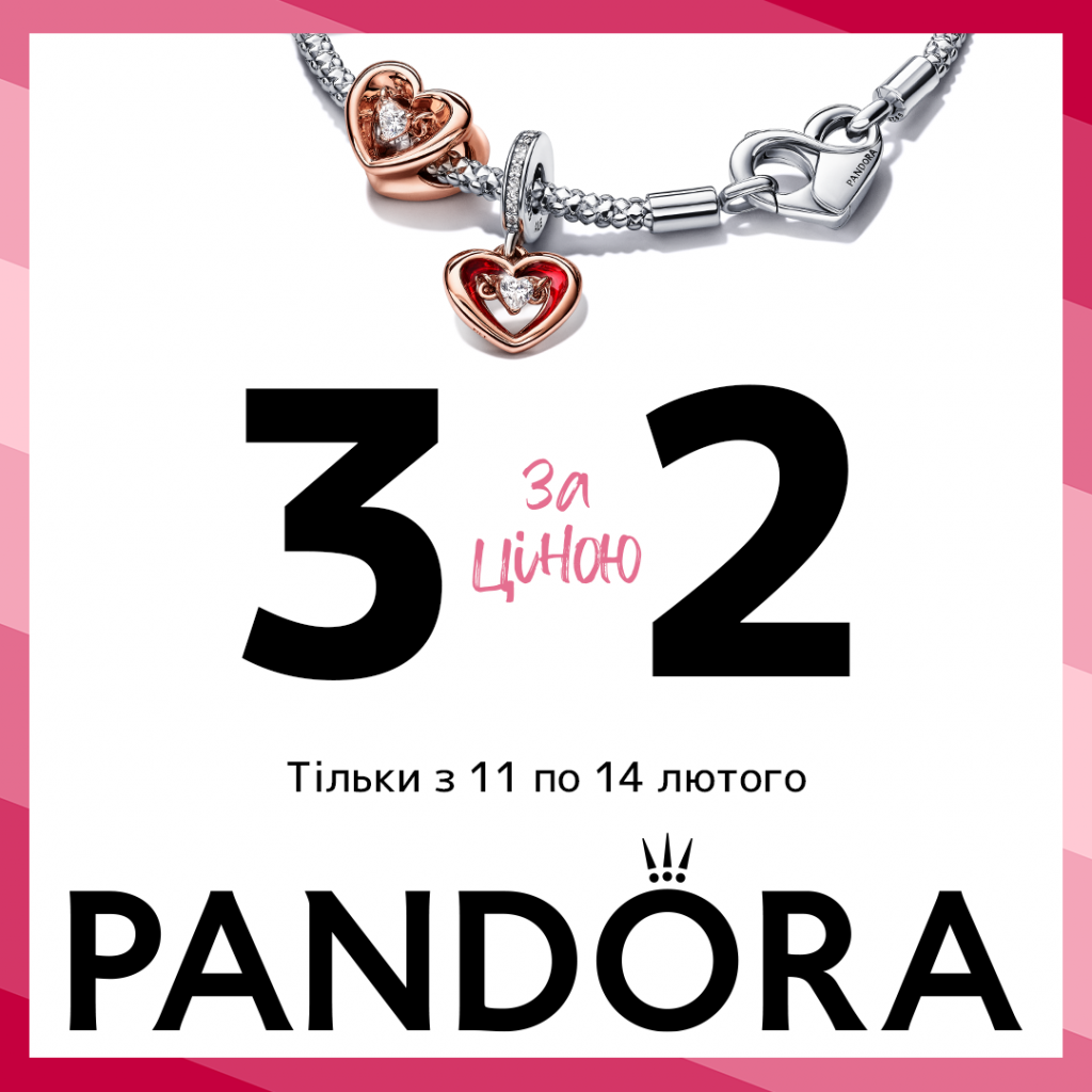 13.02.2023 Саме час вибирати подарунки від Pandora собі та близьким 🥰 Тільки з 11 по 14 лютого включно купуючи дві прикраси отримуйте третю у подарунок. До зустрічі у магазині Pandora нашого ТРЦ ❤️