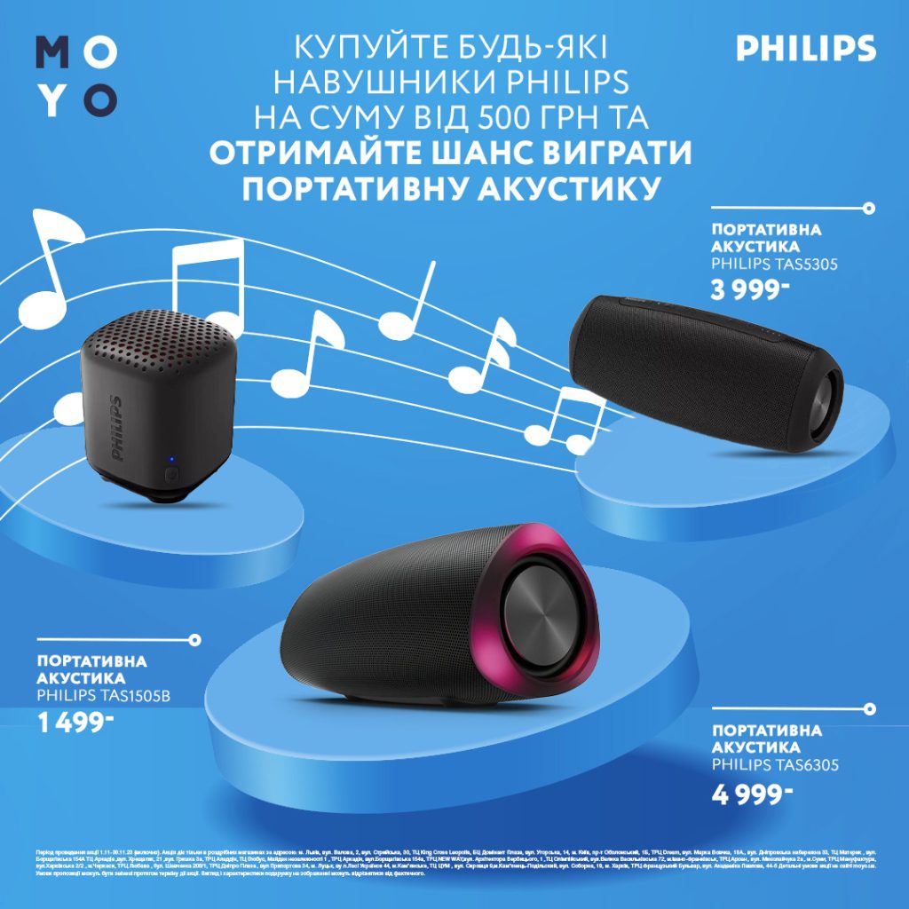 А детальніше ознайомитись з умовами акції можна на сайті https://www.moyo.ua/ua/news/ofitsiyni_umovi_aktsiyi_rozigrash_portativnoyi_akustiki_philips_.html