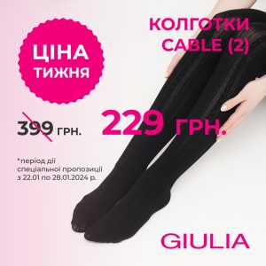 Тож скоріш прямуй в GIULIA за новою парою колготок CABLE (2) 150 den, які ти можеш придбати всього за 229 грн.