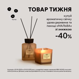 Цього тижня даруємо особливу можливість створити атмосферу спокою та розкоші в домі. Обирай запашну ароматичну свічку та дифузор “Мальва” з ароматом удової деревини та пахощів зі знижкою 40%!