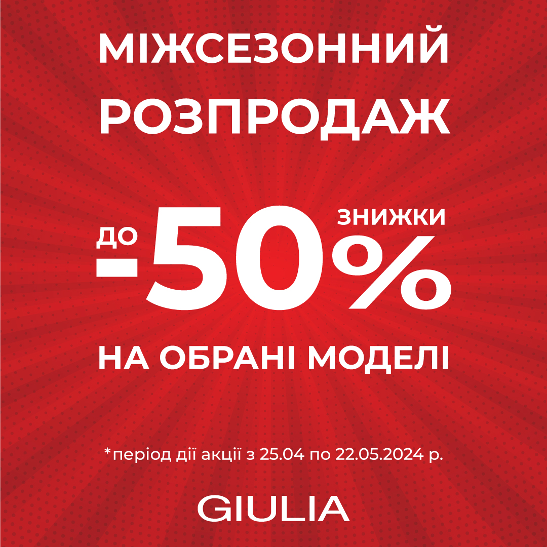 З 25.04 по 22.05 GIULIA оголошує наш улюблений міжсезонний розпродаж (зі знижками до -50% на обрані моделі!)