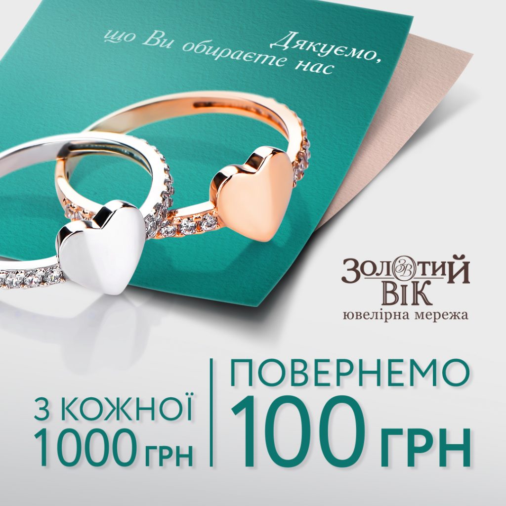 ПОВЕРТАЄМО 100 грн 💰 з КОЖНОЇ 1 000 грн у чеку при купівлі золотих прикрас 💍
