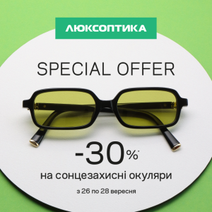 · Обирайте будь-які брендові окуляри зі знижкою -30%.