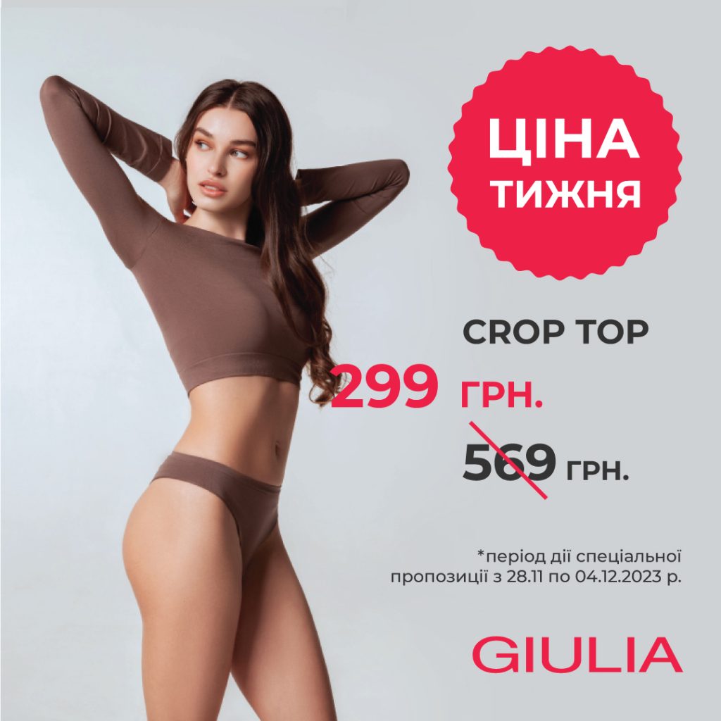 В GIULIA дуже спокуслива пропозиція – будь який CROP TOP всього за 299 грн. замість 569 грн.
