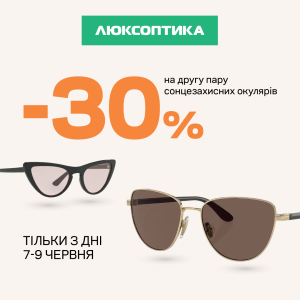 07.06.2024 В Люксоптиці час гарячих знижок🔥 -30% на другу пару сонцезахисних окулярів Обирайте для себе і рідних, та насолоджуйтесь комфортом зору у сонячні літні дні😎 ⏳Поспішайте, час обмежено: тільки до 9 червня 2024 року в оптиках мережі.