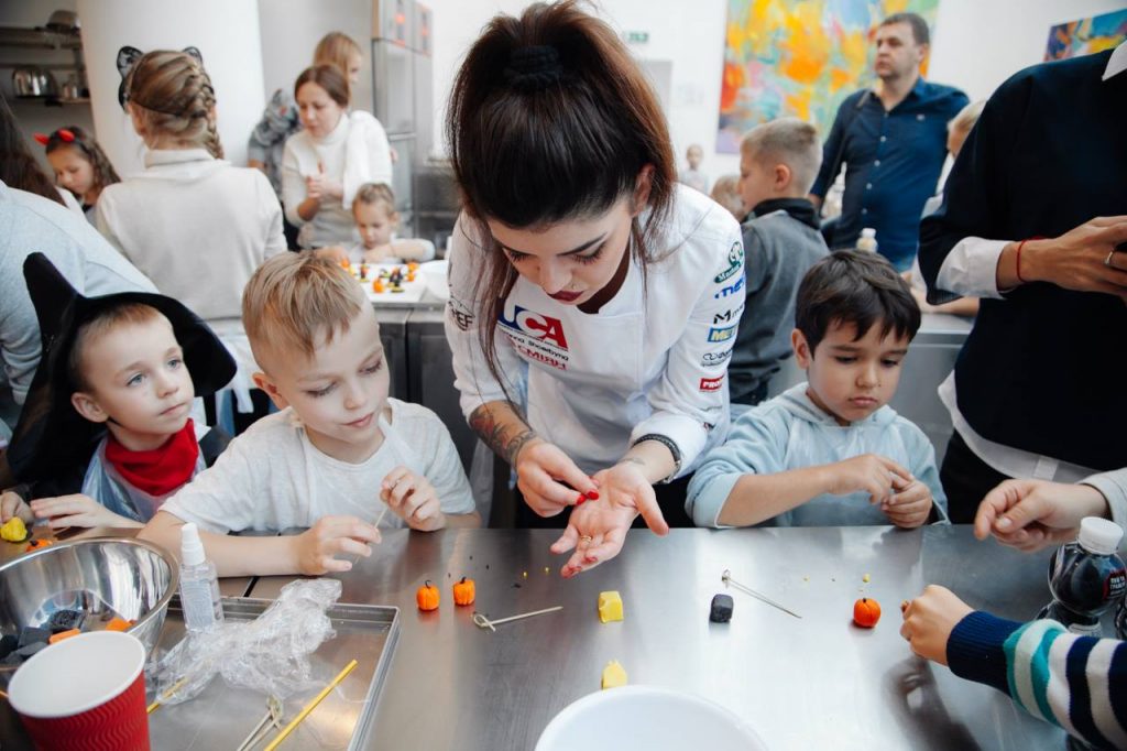Разом з Рузанною, фіналісткою телевізійного шоу “Король Десертів”, учасники майстер-майстер класу самостійно готували шоколадні кекси прикрашали їх тематичними солодкими гарбузами та капелюшками з мастики. Окрім цього, учасники навчилися робити кейк-попси та робити з них справжніх привидів.