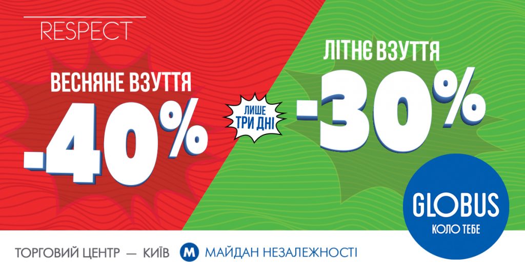 -40% на весняне та -30% на літнє взуття.