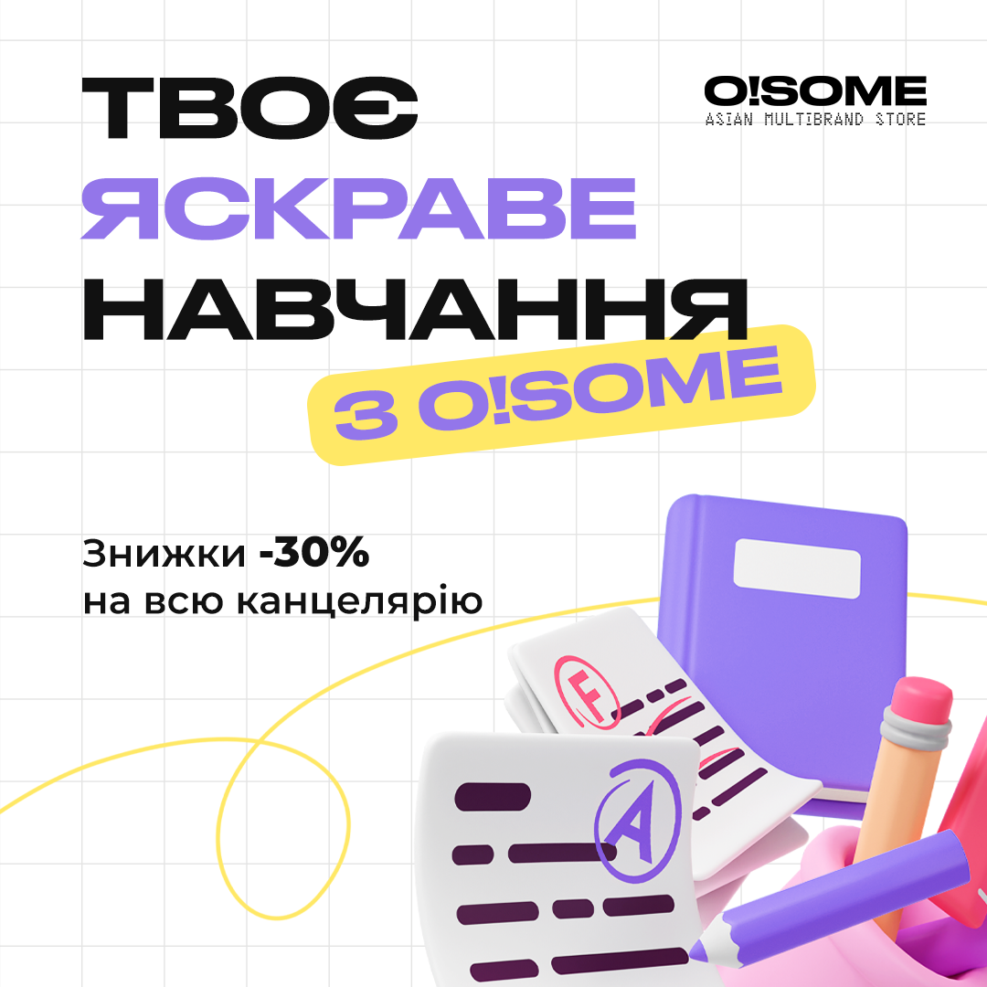 02.08.2023 Знижки -30% на всю канцелярію в магазинах USUPSO / O!SOMEАкція діє в усіх магазинах в період с 01.08.2023 по 31.08.2023.