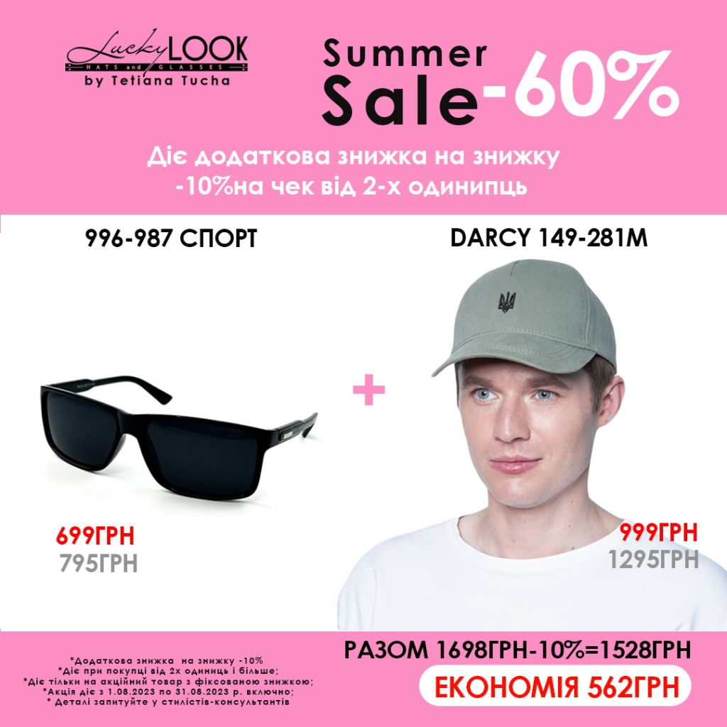 ЗНИЖКИ ДО 60% на стильні окуляри та головні убори від LuckyLOOK!
