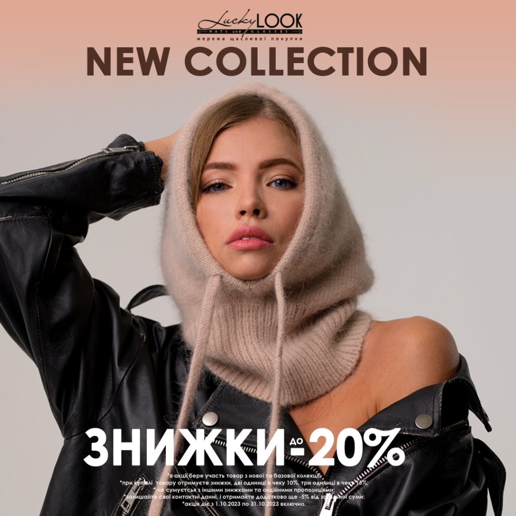 У ній ти знайдеш: • Ідеальні шапки біні, які завжди гарно сидять та пасують до усіх образів. • Модні шарфи та палантини, що зігріють навіть у найхолоднішу погоду. • Стильні сенсорні рукавички Smart Touch і неймовірно теплі рукавиці з вовни та ангори. • Трендові та ефектні капори, балаклави, шапки-вушанки, кубанки, бактуси. І ще багато інших новинок, які зараз можна придбати в магазині LuckyLOOK зі знижкою до 20%*. *При купівлі двох товарів з нової колекції діє знижка 10%, трьох товарів – знижка 15%, а при наданні контактних даних – додаткова знижка 5%. Акція діє з 01.10.23 по 31.10.23.