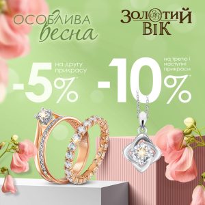 Придбайте улюблені прикраси зі знижкою -5% на другу та -10% на третю та наступні прикраси в чеку.