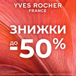 15.01.2026 В бутиках Ів Роше триває зимовий розпродаж до -50%! Встигніть здійснити покупку до 28 січня та отримайте у подарунок кульковий дезодорант з кожною покупкою від 649грн J Завітайте в бутик Ів Роше!
